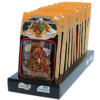 Prendiamo inoltre una padella antiaderente e poniamo all’interno 200 cc. di acqua calda (che sono un po’ di più di un bicchiere) che possiamo recuperare anche dalla pentola della pasta. Quando l’acqua nella padella comincerà a bollire possiamo aggiungere il condimento per la spaghettata prescelto (si ricorda che la dose della bustina è per la preparazione di 2 porzioni di pasta da circa 65/70 gr. ciascuna). Lasciamo che il condimento si riprenda nell’acqua mescolando fino a che la riassorba (chiaramente questa operazione avviene a fuoco lento e con coperchio) . A questo punto l’acqua nella pentola sarà bollente per cui possiamo versare la pasta (il formato che più si preferisce , noi vi consigliamo penne o spaghetti di grano duro e ovviamente si deve seguire il tempo di cottura dato dal pastificio) Ricordiamoci di Non Salare , (perché il preparato contiene già sale ) neanche la pasta. Non appena la pasta sarà al dente , scoliamola e mettiamola a saltare nella padella dove il condimento avrà preso corpo. Aggiungiamo dell’olio extra vergine di oliva ed avremo ottenuto così un ottimo gustoso primo piatto , dalla preparazione facile, versatile e veloce . Buon Appetito !
